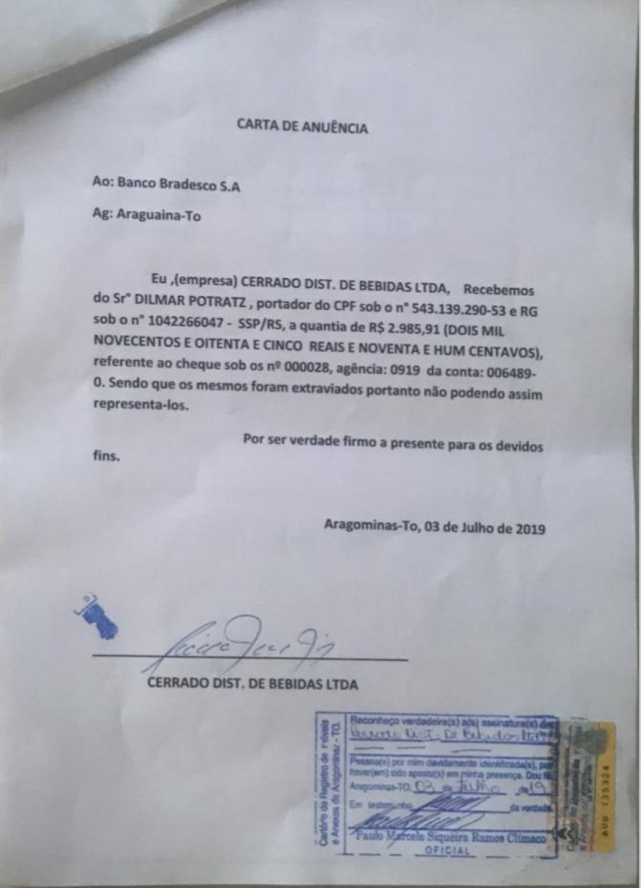 Uma pessoa foi presa nesta quinta-feira em Araguaína (TO) acusada de fazer uso de documento falso para enganar um banco e limpar o nome. Dilmar Potratz, de 53 anos, usou os documentos para tentar retirar o nome dele do cadastro de emissor de cheques sem fundos. A dívida com 5 cheques devolvidos era de quase 7 mil reais. A fraude foi percebida pelo banco porque os documentos continham selos cartoriais antigos, que deixaram de ser utilizados pelos tabeliões em 2015. Atualmente são usados selos digitais, impressos na hora que o cartório realiza o ato e são de emissão controlada pelo Tribunal de Justiça do Estado do Tocantins. O acusado foi preso em flagrante ao sair da agência e levado para a delegacia de Araguaína onde foi ouvido. Ele foi conduzido ao 4º DP e se condenado, pode pegar até 5 anos de prisão.